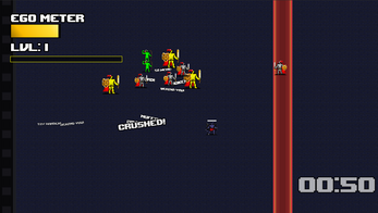 The Power of Motion: You are so pumped with adrenaline that you DASH automatically every 3 seconds as long as you keep moving. Total Invincibility: Swords bounce off you! Use your massive body to crush the haters into red paste. Verbal Warfare: Dodge physical words flying at your face. Don't let them lower your self-esteem! Ego Management: Keep your Ego Meter high. If it hits zero, the Great Demon Lord goes home to cry. Game over.